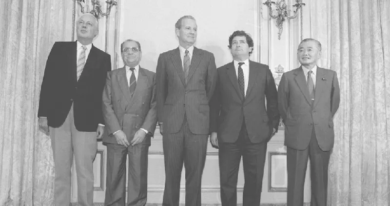 1980년대 중반, 로널드 레이건 행정부 시절 미국은 막대한 재정 적자와 무역 적자라는 '쌍둥이 적자'에 시달리고 있었습니다. 이를 해소하기 위해 1985년 9월 22일, 미국, 영국, 프랑스, 독일, 일본의 G5 국가 재무장관들이 뉴욕 플라자호텔에 모여 미 달러화 가치 하락을 유도하기로 공동 합의했습니다. 이것이 바로 '플라자 합의'입니다.