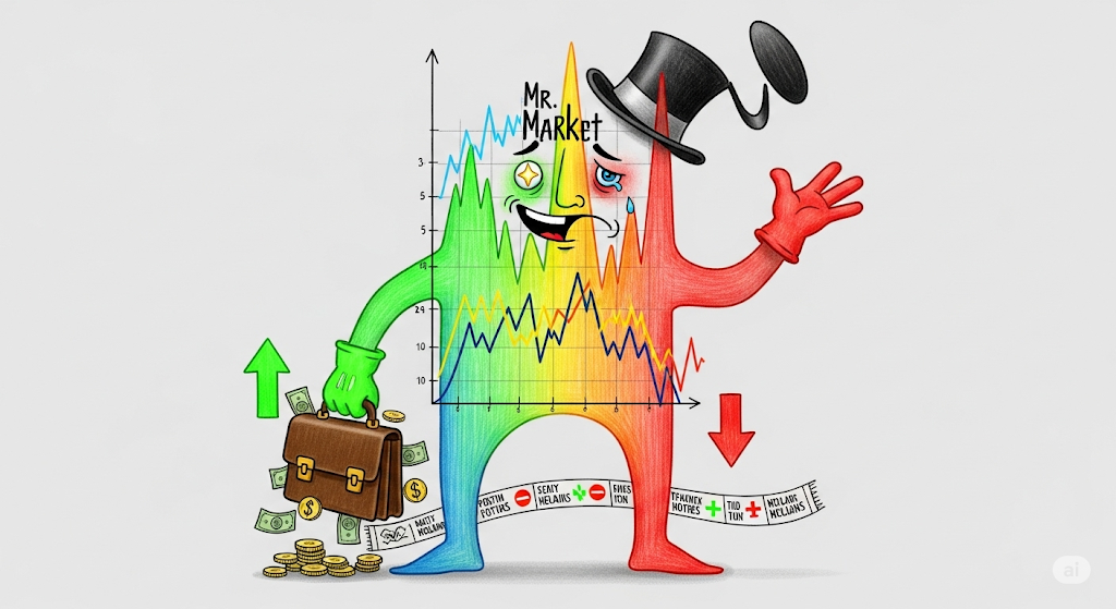 그레이엄의 천재성은 그의 유명한 '미스터 마켓(Mr. Market)' 우화에서 잘 드러납니다. 미스터 마켓은 매일 투자자를 찾아와 자신의 주식을 사거나 팔라고 제안하는 조울증 환자인 동업자에 비유됩니다. 그의 기분은 극단적인 행복감(euphoria)에서 깊은 절망(despair)까지 예측할 수 없이 널뛰며, 그가 제시하는 가격 역시 그에 따라 터무니없이 높거나 낮아집니다.